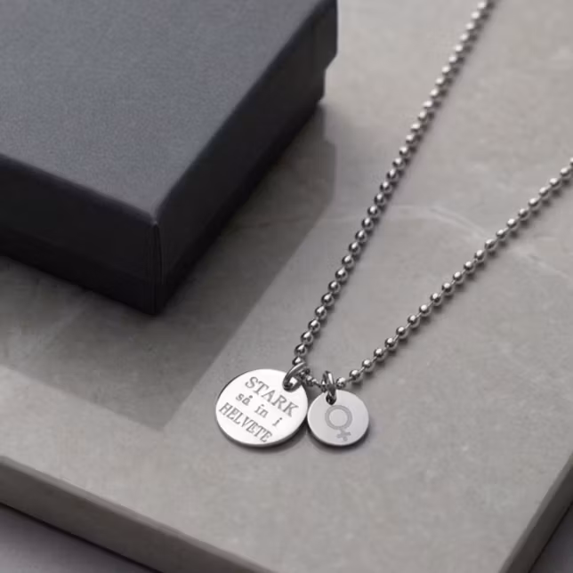 • Design: Smycket pryds med de inspirerande orden "Stark så in i helvete" och kompletteras av en liten tag med det ikoniska kvinnotecknet. Detta är mer än ett smycke - det är ett statement.