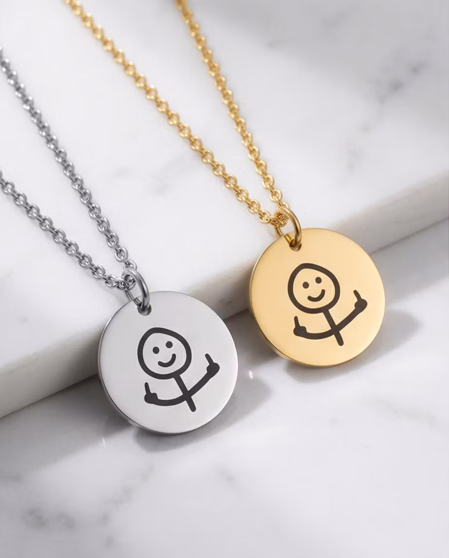 Uttryck dig själv: Med en stilfull gubbe som visar fingret, kan du med detta halsband enkelt visa vad du tycker om världen (eller kanske bara om dagen).