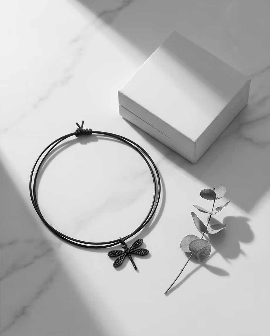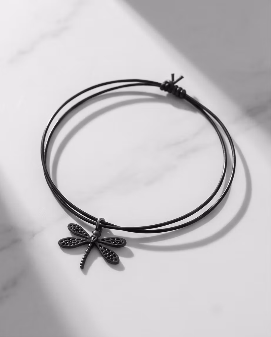 Halsband Svart Slända 159:- 127:- I lager Lägg i korgen Information En svart oxiderad slända. Halsbandet är I justerbart läder