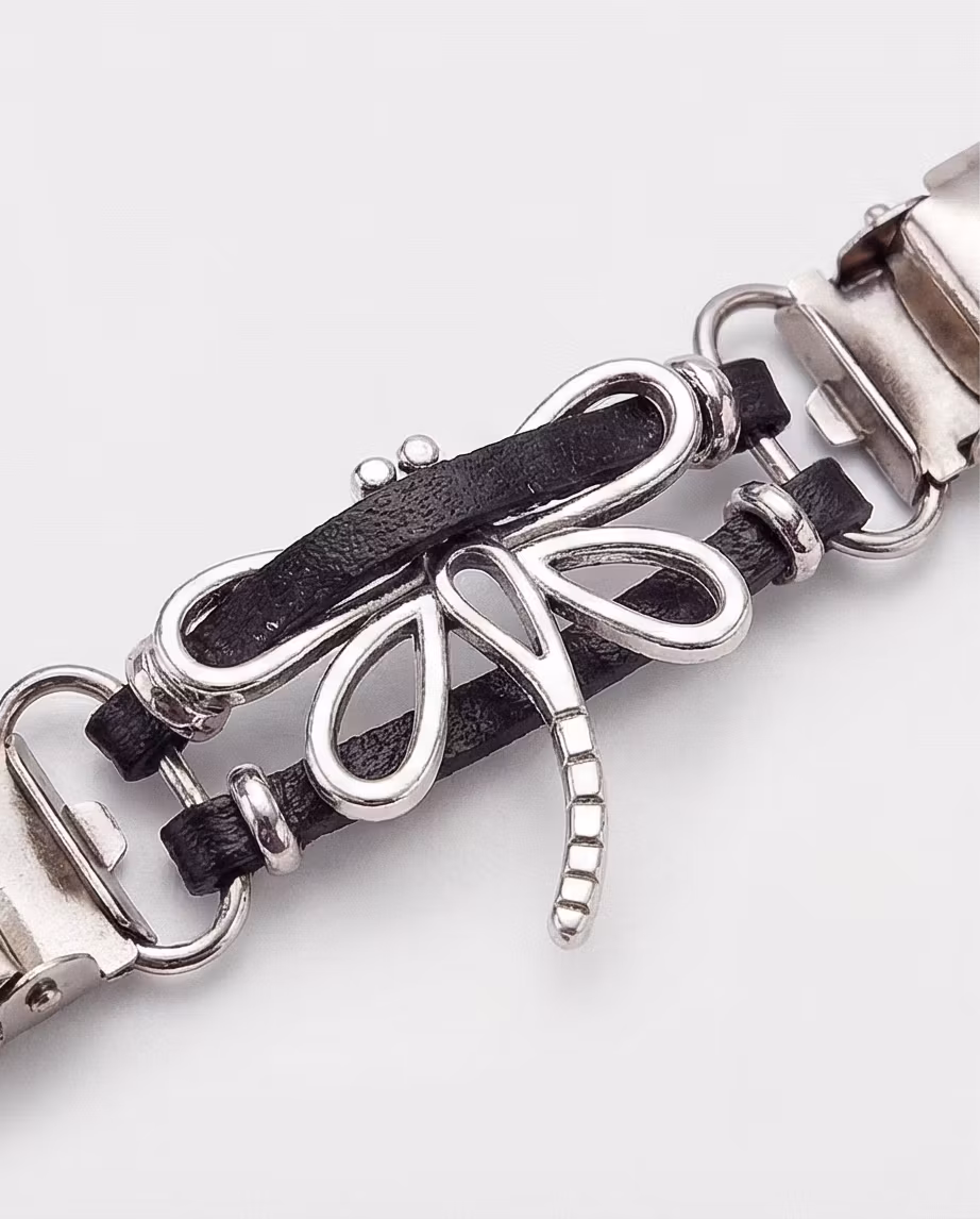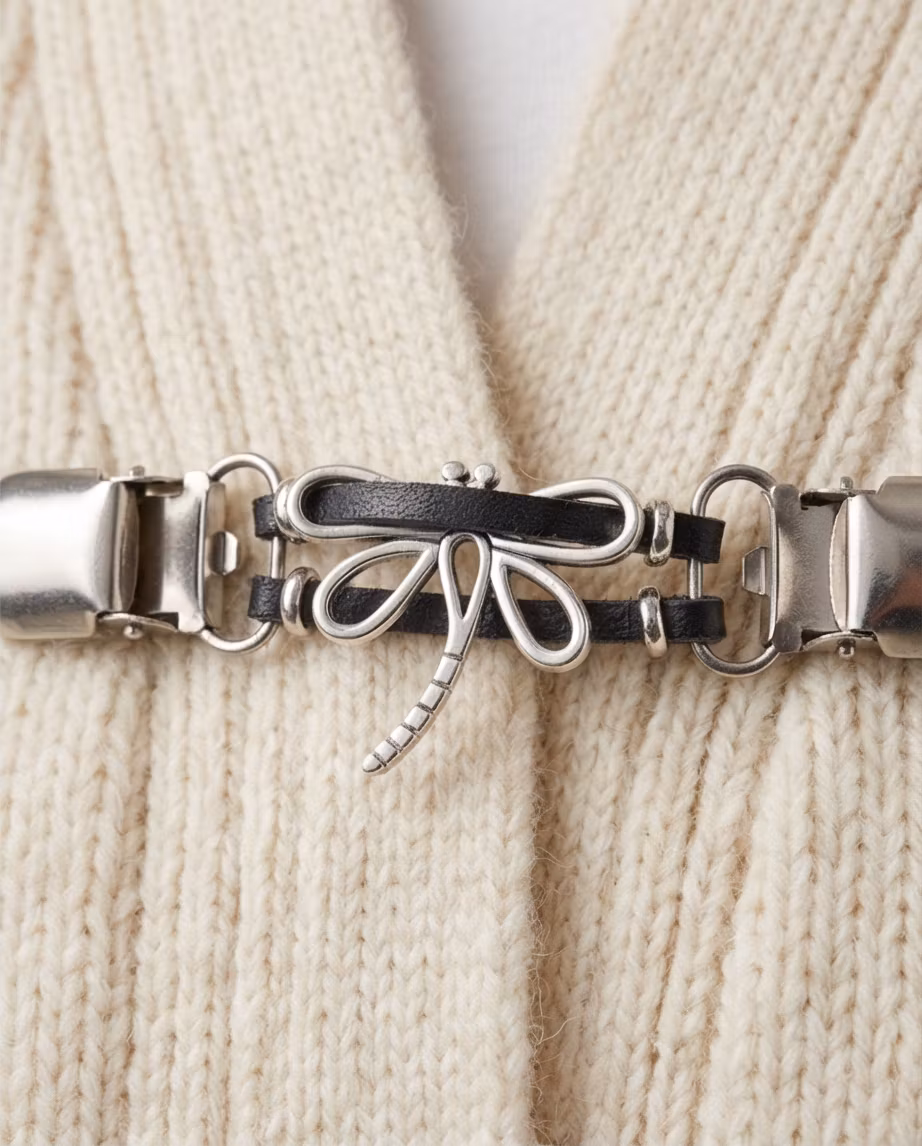 Unikt smycke att använda till den knapplösa koftan. Cardigan clip i svart äkta läder med ett slända.