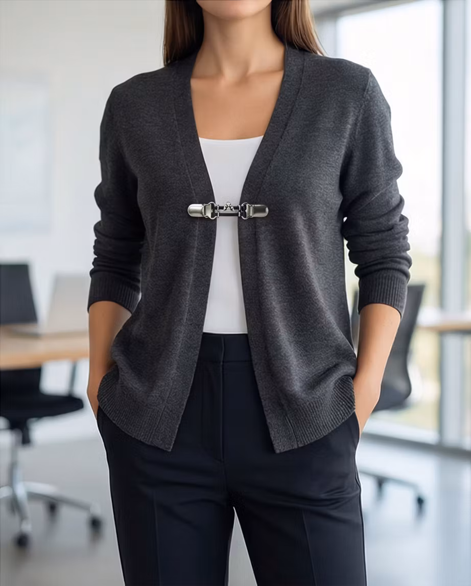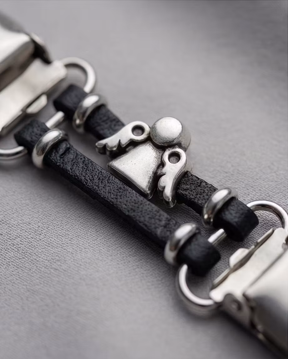 Cardigan clip / koftaspänne. Ett smycke med funktion! Till den knapplösa koftan eller sjalen. Svart äkta läder med unik ängel design.