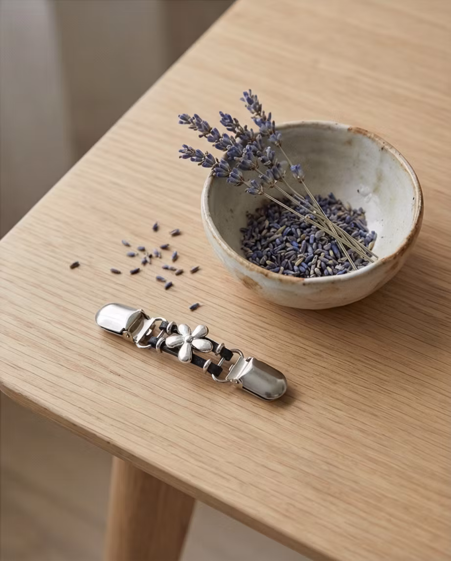Cardigan clip / koftaspänne. Ett smycke med funktion! Till den knapplösa koftan eller sjalen. Äkta läder med unik design.