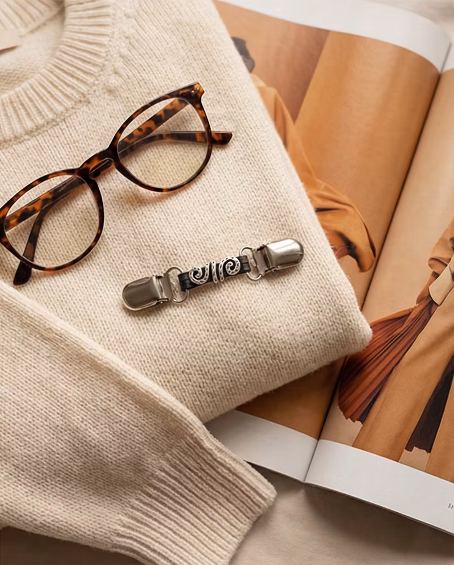 Koftaspänne viking 149:- 119:- @Färg på läder Svart Brunt I lager Lägg i korgen Information Cardiganclip/koftaspänne för den knapplösa koftan eller sjalen.Ett unikt funktionellt smycke!