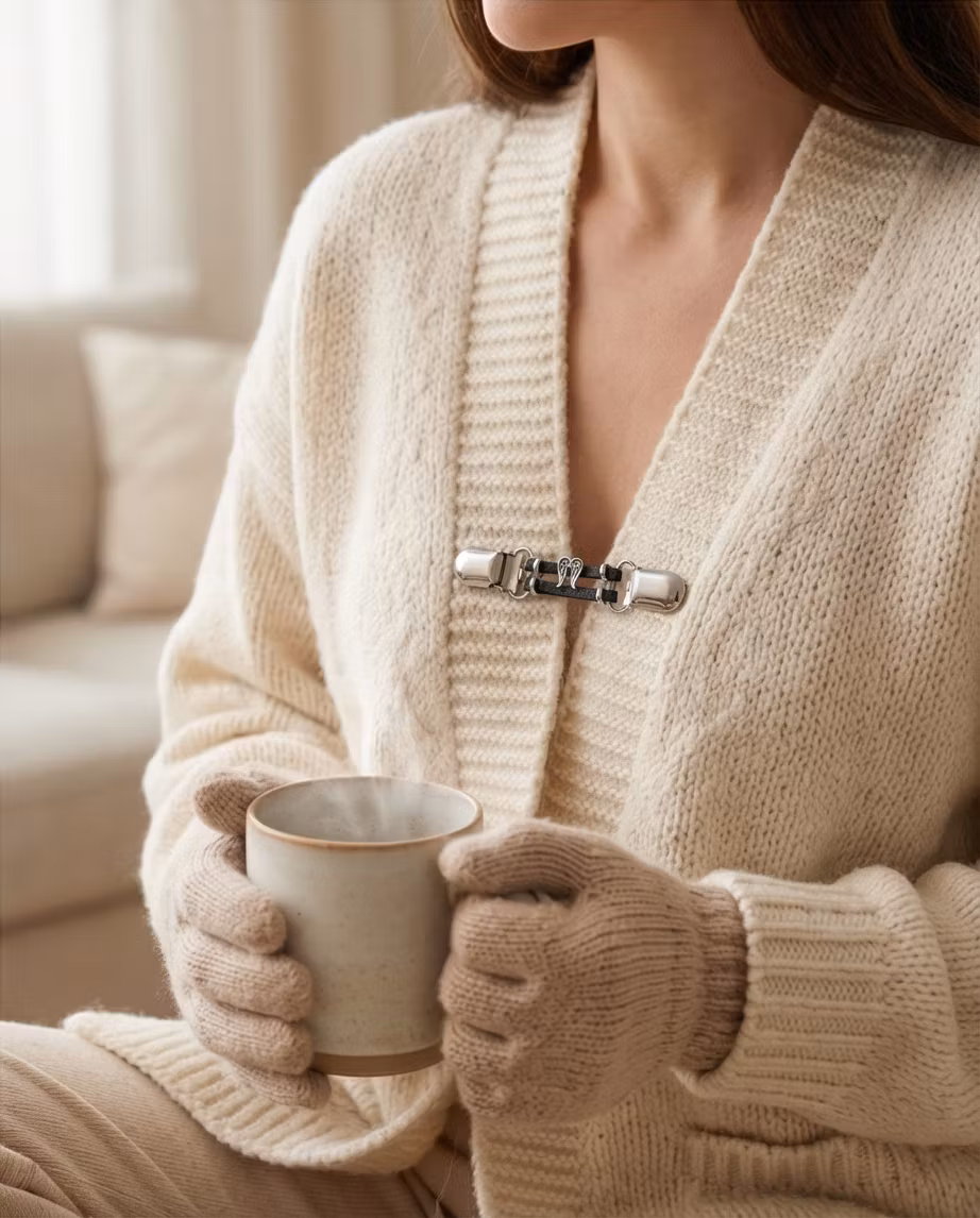 Koftaspänne " Änglavingar" 149:- 119:- @Färg på läder Svart Brunt I lager Lägg i korgen Information Cardiganclip/Koftaspänne med små änglavingar. Äkta läderTill den knapplösa koftan