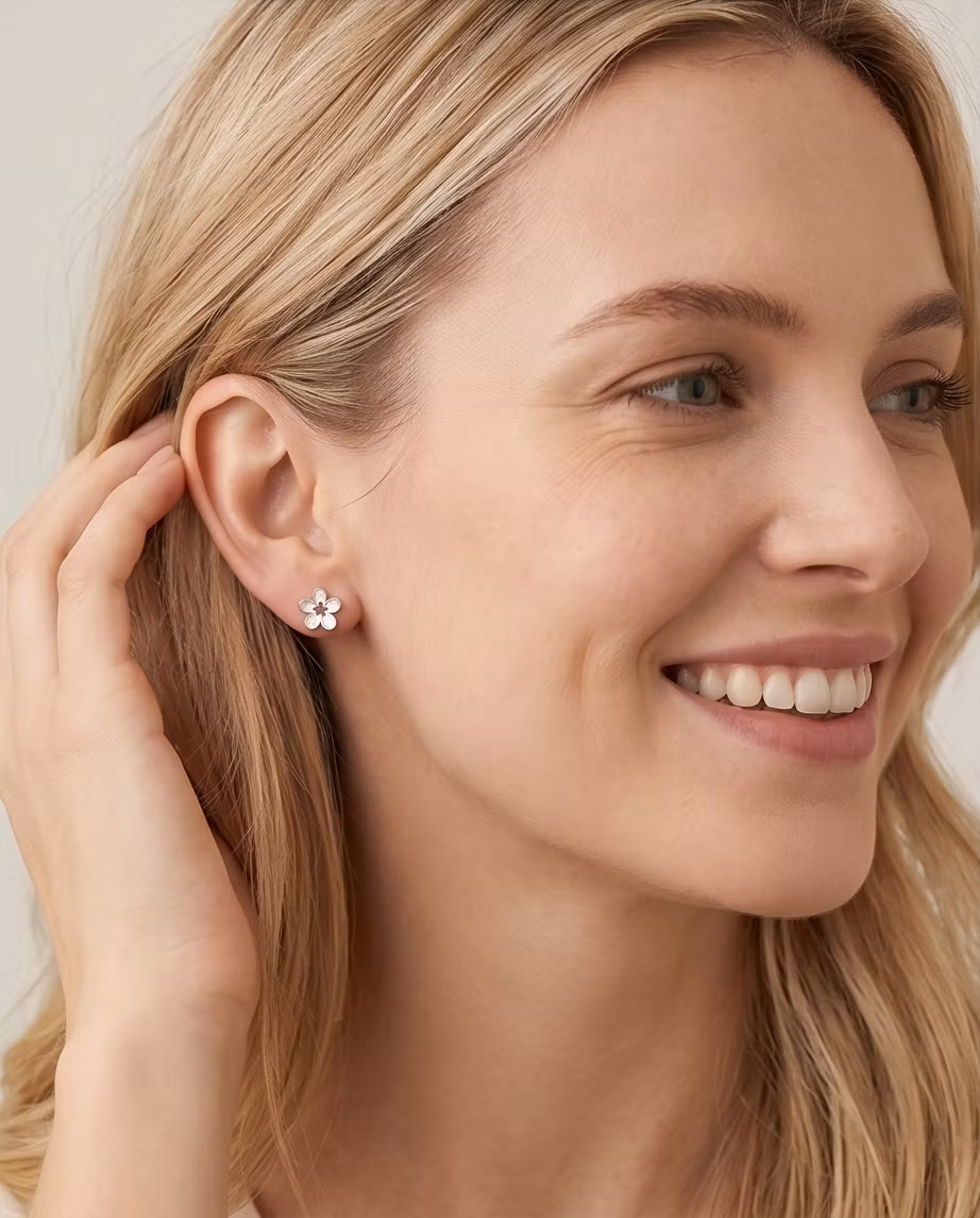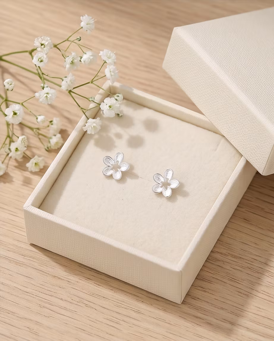 Våra örhängen är silverpläterade och formade som konturer av blommor, vilket ger dem en diskret look.
