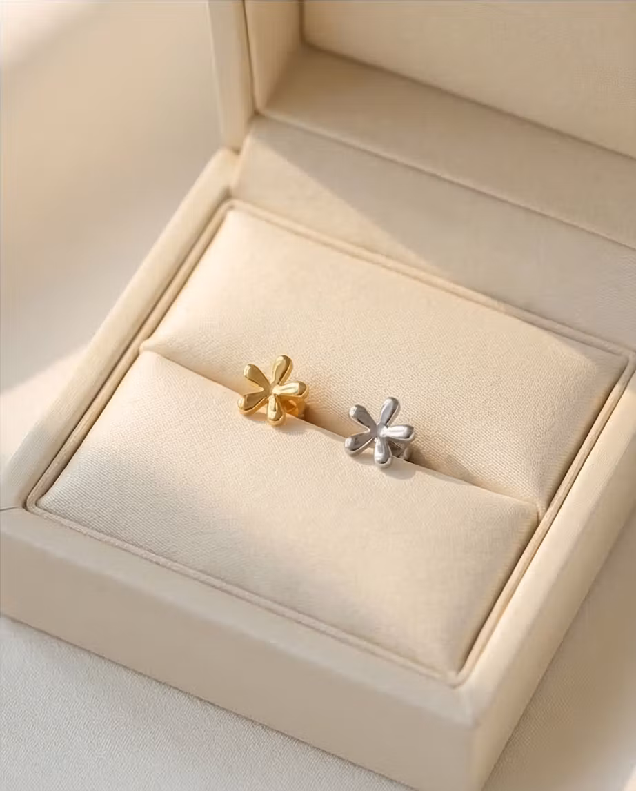 Små minimalistiska örhängen. Blommor