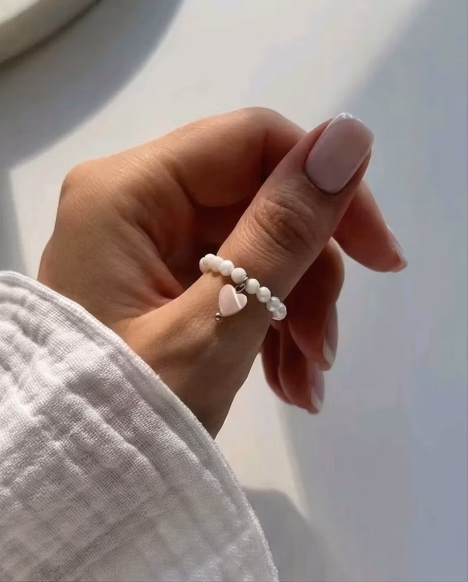 Ring Pink 129:- I lager Lägg i korgen Information En söt pärlring där ringen är elastisk . Ringen är med vita pärlor och ett litet rosa hjärta